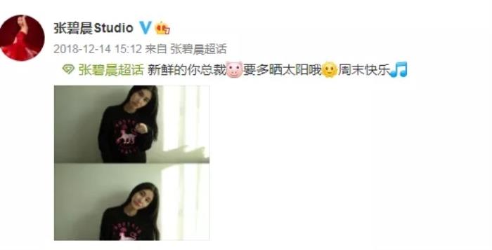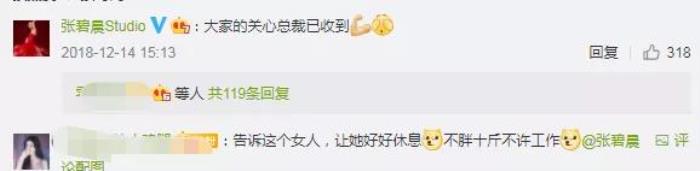 2018年12月2日,张碧晨发布了一个活动行程,而活动当日工作室并未更新动态,只晒出了一组室内照片,评论区粉丝则让张碧晨好好休息,工作室也回应大家的关心已收到。
