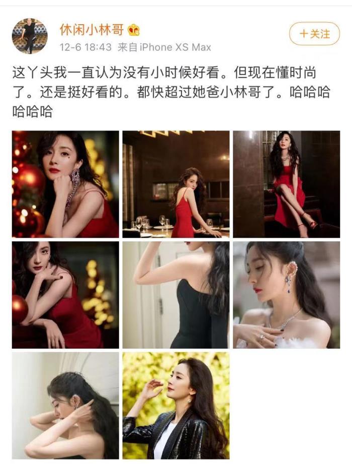 杨爸爸的配文却说丫头没有小时候好看了,不过现在懂了时尚,还是挺好看的,并打趣说闺女马上就要超越自己了,引发网友们的调皮回应,甚至杨幂本人也来给爸爸捧场。