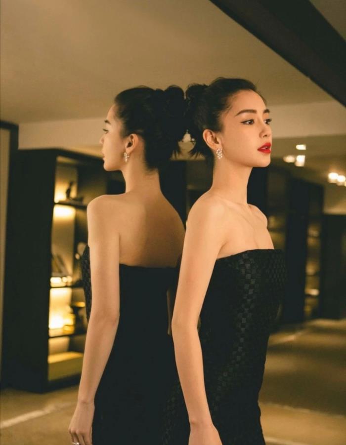 看杨颖近期的造型就高级感多了,妆容上也非常清爽,看了杨颖的这么多张旧照在看杨颖的现在的造型真的有一种洗眼睛的感觉。扎起一个利落的丸子头,随意“溜”出来的几缕碎发更显灵动,精致的五官无需任何任何刘海修饰。杨颖穿了一身修身的黑色礼服,虽然没有任何装饰但是用料精致,仔细看面料上的暗纹有些像编织的效果。