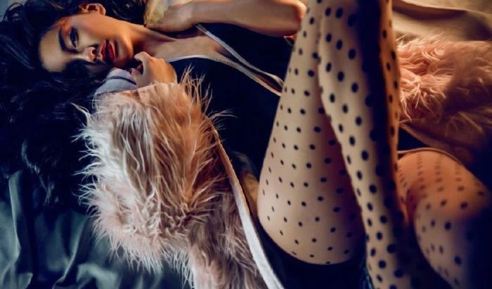 杨颖的这色好呢造型终于摆脱了烟熏妆,看着瞬间清爽了不少。这身造型同样的是非常性感的造型,上衣是深V的设计,领口直接开到腰部。外搭一件皮草披风,性感华丽,一双波点的透视丝袜,造型大胆时尚。