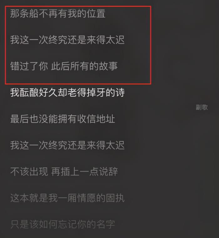 歌词内容如下:那条船不再有我的位置,我这一次终究还是来得太迟,错过了你,此后所有的故事。