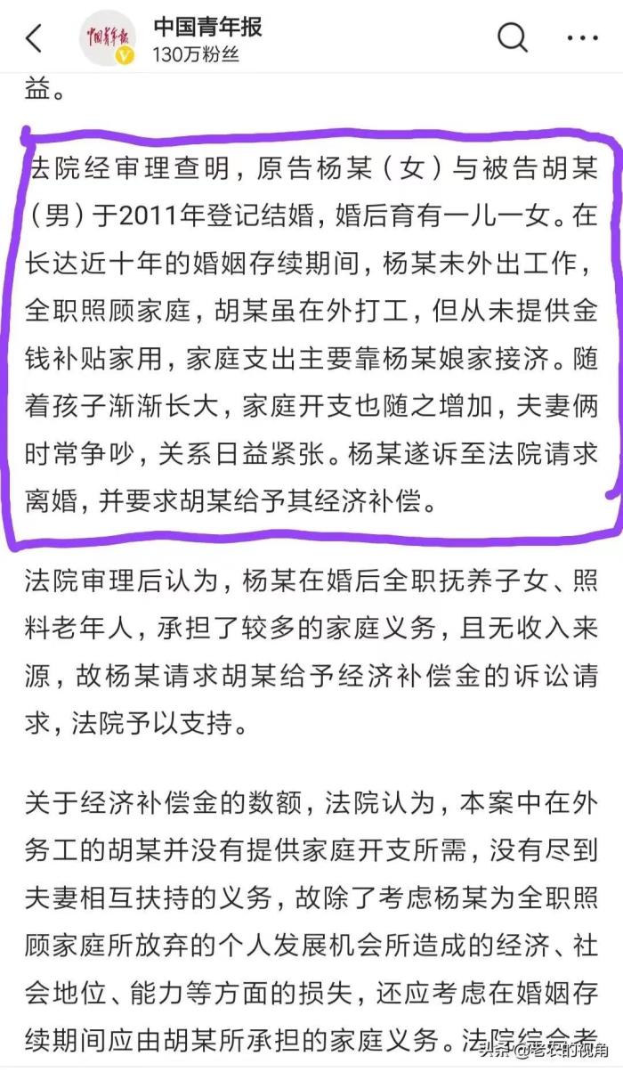 媒体的说法是:胡某虽然在外边打工,但从未提供金钱补贴家用。