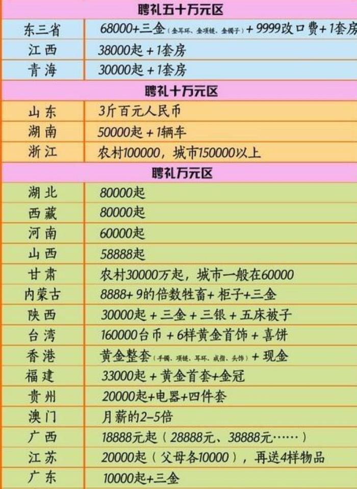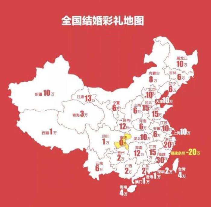 第一个版本,纯彩礼全国各地地图式彩礼金额: