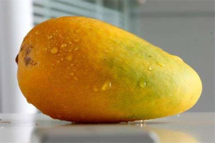 比如说芒果,自然成熟的芒果,颜色会呈现均匀的黄色,而催熟的芒果,小头顶尖处会呈现一种翠绿色,看起来熟得不自然。