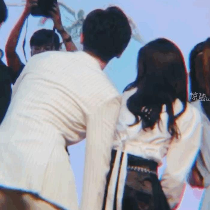 有时候鞠婧祎则是会躲在张哲瀚的身后走戏,张哲瀚更是一脸的宠溺,只有两人关系真的好到一定地步才会这么靠近吧,当时鞠婧祎的手非常避嫌扯着张哲瀚的T恤,都把张哲瀚的腹肌勒出来了: