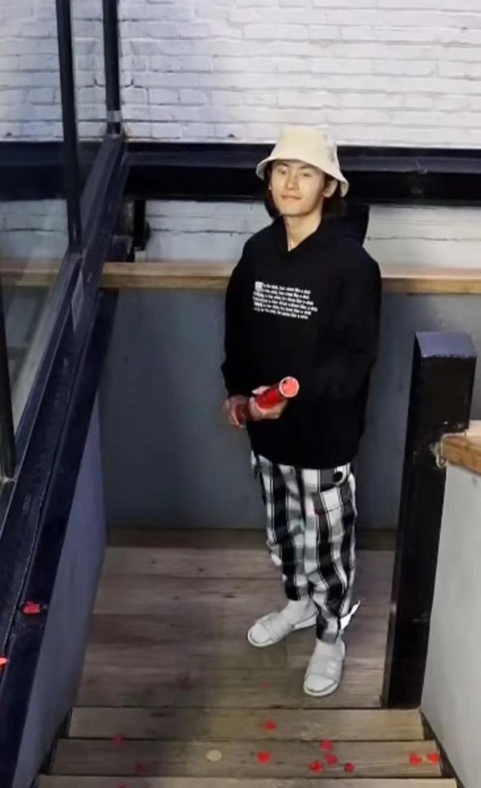 还有一次鞠婧祎张哲瀚还撞衫了,两人穿了同款的黑白格子裤——