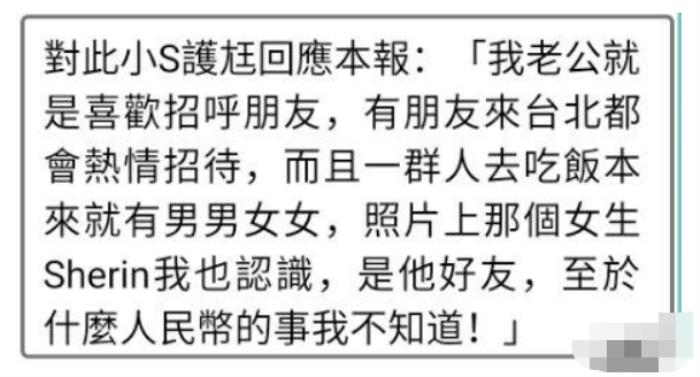 对此,小s却出面帮老公澄清,称照片上的女生是老公的朋友,她也认识,至于钱的事她不知道。