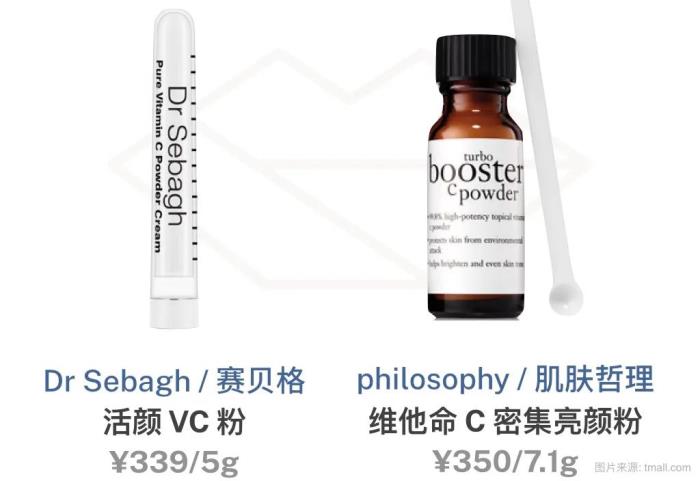 自然哲理的 VC粉一般溶解在其他的乳液、面霜中使用,赛贝格的 VC粉可以直接用。