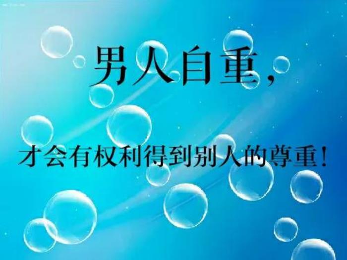 女人要懂得自爱,因为你懂得自爱,才有人爱你,你也才有权力去爱别人。男人要懂得自重,因为你懂得尊重别人,你才会得到别人的尊重,你才能从与别人互相尊重中得到社会乃至家庭中更多的快乐和幸福!您说呢?