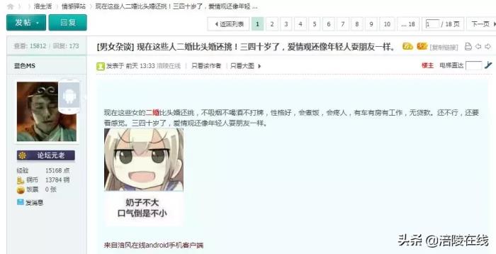 最近涪陵一网友在涪风论坛发帖吐槽“现在这些人二婚比头婚还挑!三四十岁了,爱情观还像年轻人耍朋友一样!”该 帖一经发出之后,立即引起了众多网友的热议!