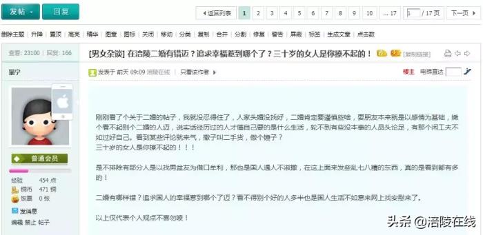 此帖一发,立即引起了众多网友的热议。该帖帖量也达到了17000+,回复190+,随即另一位网友发帖表达出了不同的观点:“在涪陵二婚有错迈?追求幸福惹到哪个了?三十岁的女人是你撩不起的!”