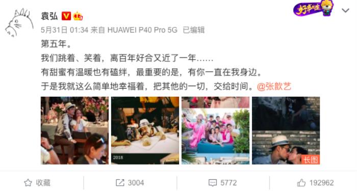 当然不是,昨天袁弘还发了一条微博,说自己跟张歆艺在一起五年了,两个人离“白头到老”又近了一步。张歆艺结过婚,但是她还是嫁给了很多女人的梦中情人袁弘。袁弘多帅啊,而且张歆艺比袁弘还大一岁呢。