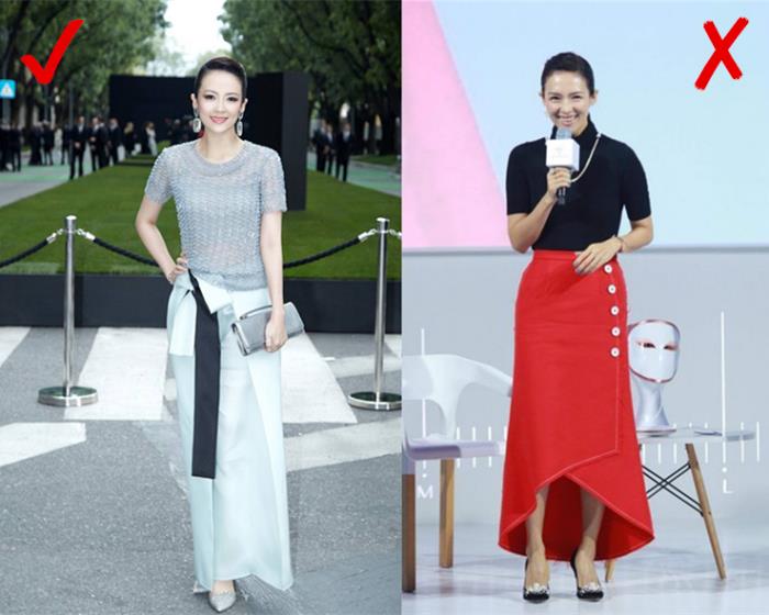 ▲时髦精宋佳偶尔也会出错,她的身材和骨架跟王菲挺像的,斜肩(露单肩)很适合宽肩星人,不对称领口裁剪可以从视觉上拉长比例,斜肩能将锁骨、手臂、肩膀的线条展现得更优雅性感。