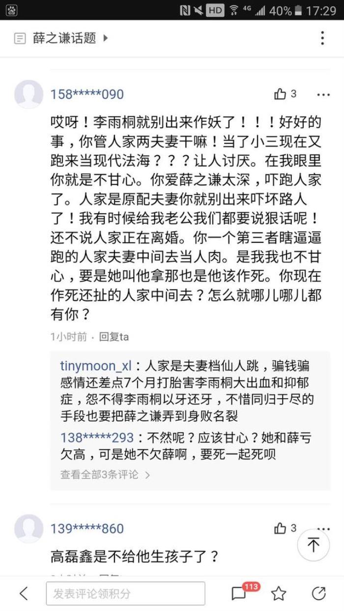 在李雨桐连爆猛料之后,薛之谦也给予了回应,不过此次薛之谦的微博之下都是一些批评的声音,当然也有死忠粉的支持。
