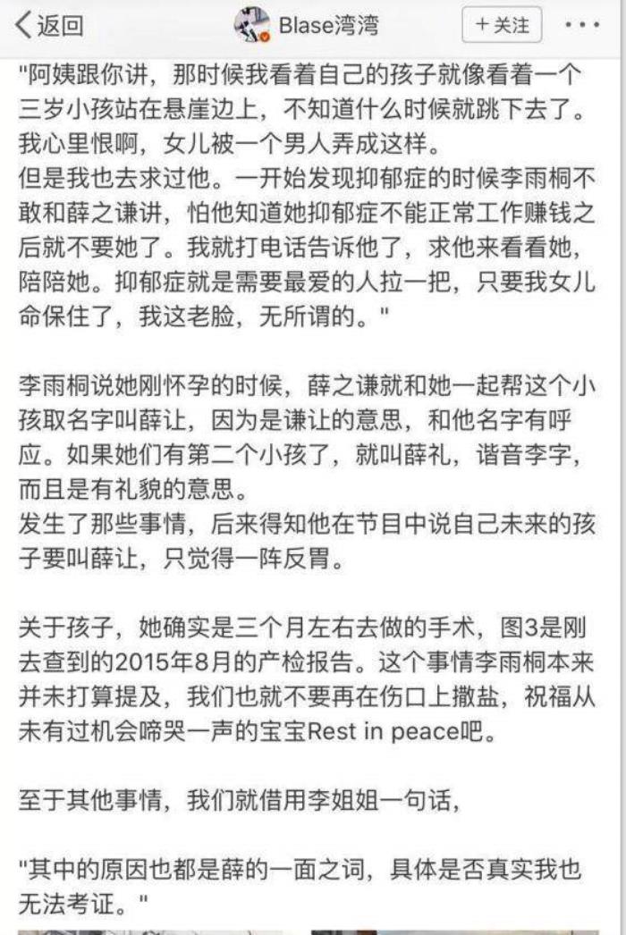 李雨桐的闺蜜blase湾湾晒出孕检、流产记录:
