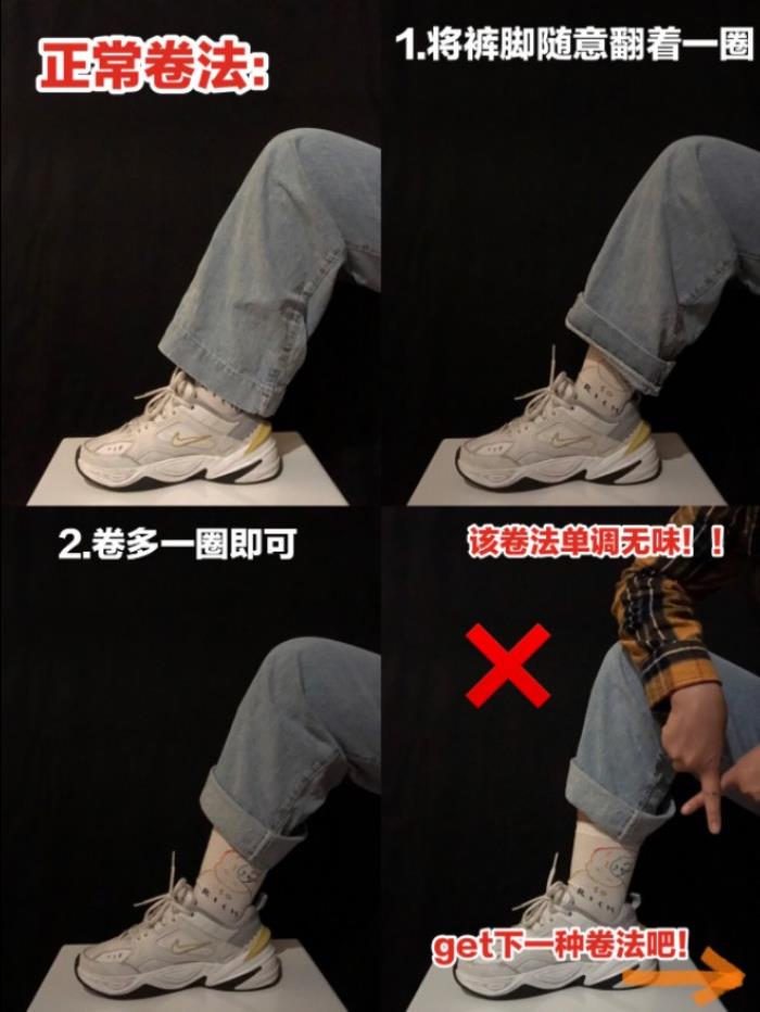 大家好,我是你们的糖果啊!阔腿裤人人都爱穿穿着显腿长是有法‼️不管是裤脚大还是裤子长,都能利用6种卷裤脚方法