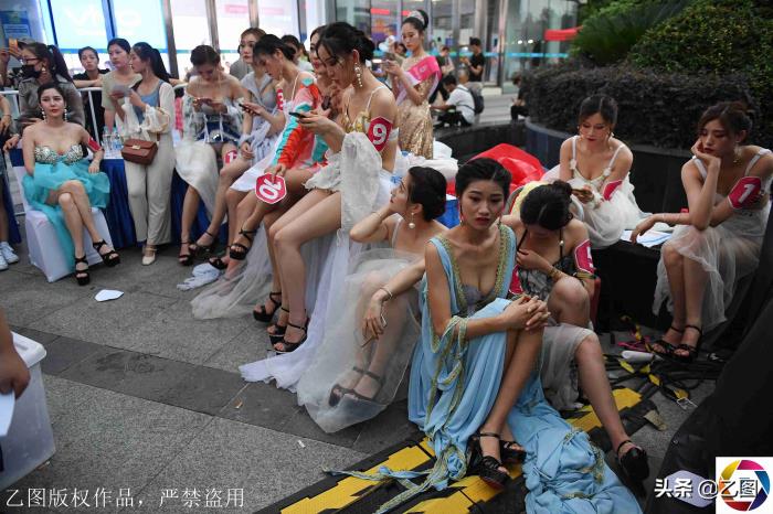 此次决赛,12位佳丽共进行“伊丽莎白风”“摩登女郎”“概念内衣”三轮主题秀。评审团重点考察选手的形体条件和舞台气质,分数为100分制,根据分数高低决定冠亚季军,据悉冠军将获得38万元美丽基金。图为因为天气太热,模特都扎堆更衣棚外候场。