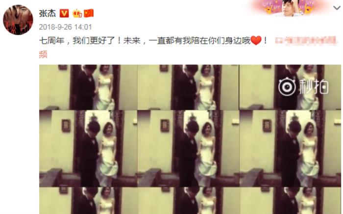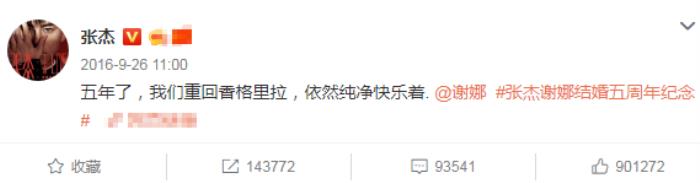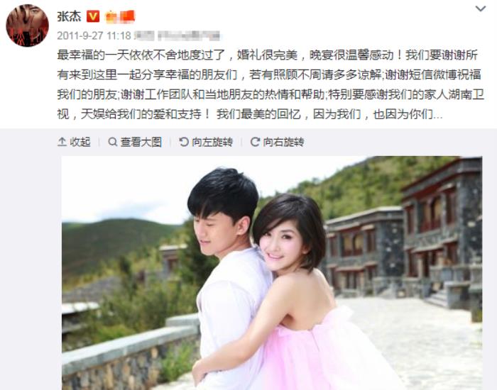 结婚三周年,张杰分享与谢娜甜蜜合照。结婚两周年,没看到张杰更博!