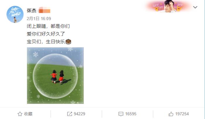 而另一边作为父亲的张杰自然也不会缺席两个女儿的成长。前段时间,张杰还在自己的账号上晒出两个女儿在草原上奔跑的照片帮她们庆生,并表白到爱你们好久好久。