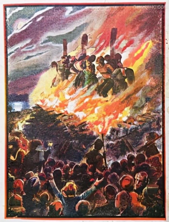 最终,内维尔并不像电影里那样生擒了夜行生物,而是被夜行生物生擒,绑上了火刑架。