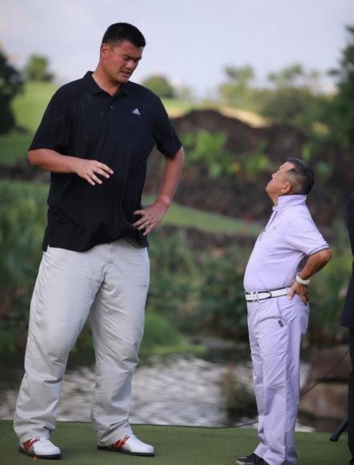 和篮球运动员合影都是如此,那么,和普通人合影姚明的体型则显得更加庞大了。网上曾经流传过一张姚明和曾志伟的合照,从图片中,我们可以看到,姚明和曾志伟站一起仿佛“爸爸”和“儿子”,大姚看曾志伟甚至还需要俯视45°,两人站一起也是最萌身高差了。