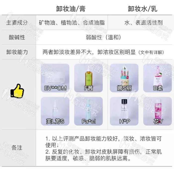 ① 对于淡妆(涂防晒、粉底之类的),每个卸妆产品差异不大