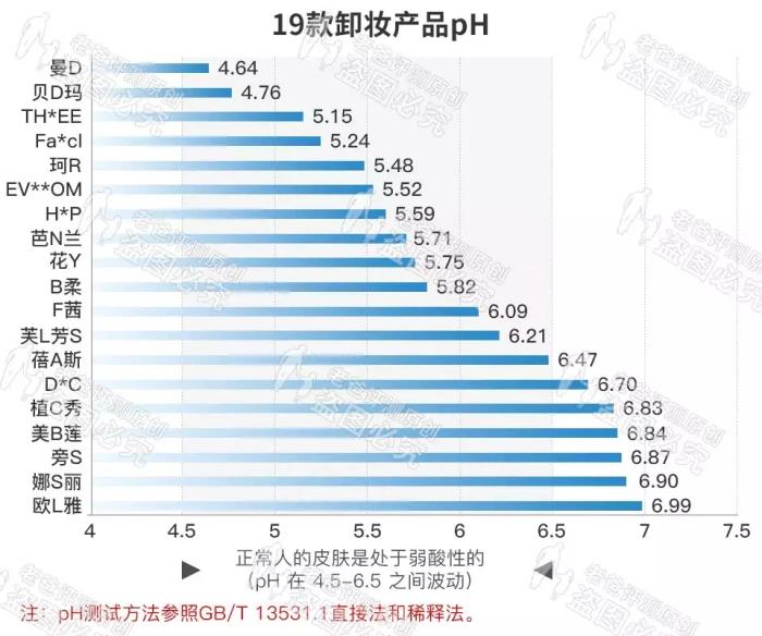 经测试,19 款卸妆产品的 pH 值均呈弱酸性,与人体皮肤 pH 值相差不大,刺激性都不大,可以放心。