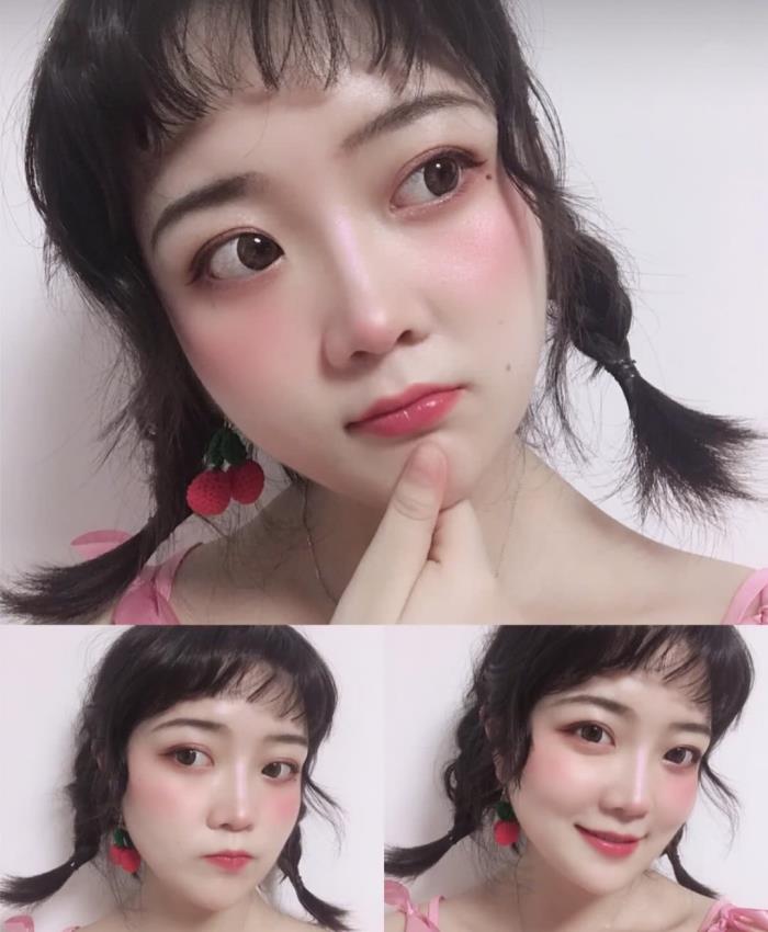 真的满屏都是洋气、可爱、甜美气息,这样一款哪吒头双丸子扎发,就给人一种超级可爱减龄的效果。进行了小烫卷的发丝,有一些凌乱的空气感,前面的齐刘海,首先要修剪得薄碎一些,然后再微烫卷一下,这样不仅好看,更修饰脸型。
