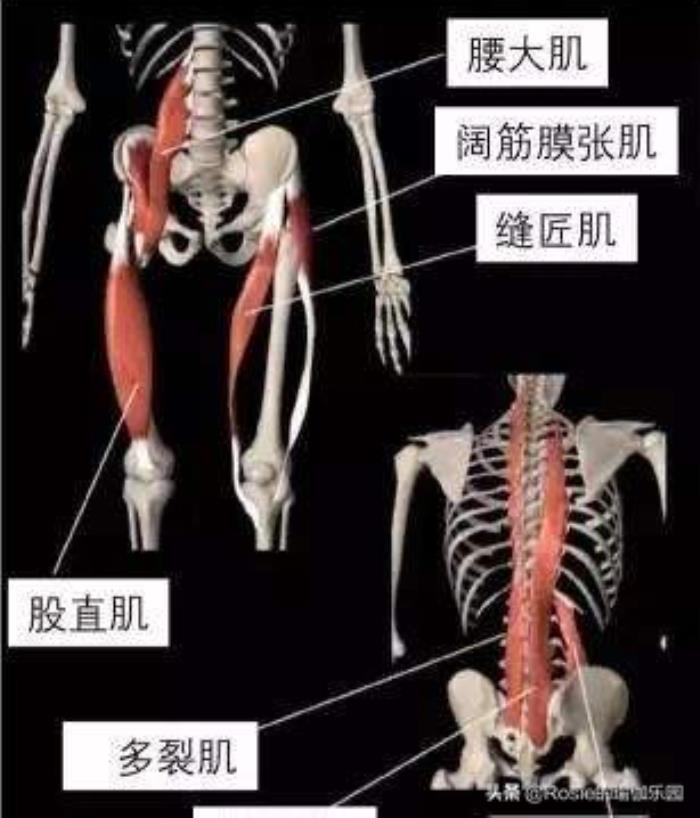 行走中,注意正确伸展髋部,避免造成髋屈肌群(髂腰肌、股直肌、阔筋膜张肌)的代偿,加重骨盆前倾,增大腰痛风险。同时,如果不能正确伸髋,会因股骨内旋过多,加重O型腿。