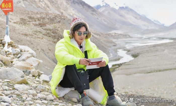 中长款羽绒服实用性爆表,既能遮肉显瘦又能御寒保暖,参加节目录制的俞灏明也没有放弃它。不过相较于黑色羽绒服的低调,这款荧光绿羽绒服显得格外显眼。尤其是和身后环境做对比,俞灏明的存在感超越一切。