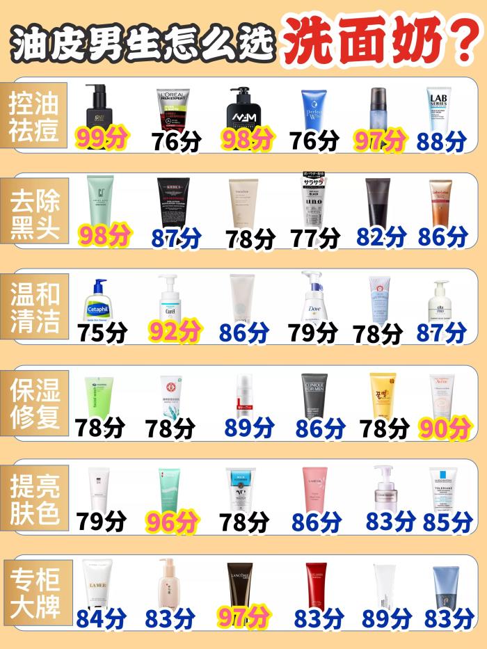 新品男士洗面奶功效大全控油祛痘洗面奶成绩单排行榜