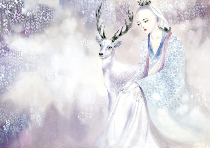 过了几天,老者到李家荒废的园子里住下,李秀才来到园中,猛然看见一排排华丽的屋舍拔地而起,进屋一看更不得了,只见摆设讲究、器具雅丽: