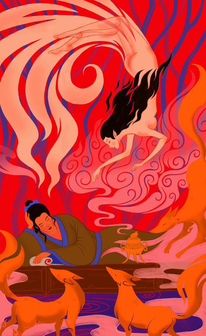 这时李秀才明白了,这是一家子狐狸,他动了杀心,到集市上买了许多硫磺和芒硝,暗中布置在园中。见时机成熟,李秀才便点燃所有硫磺,一瞬间爆炸震天,烧得黑烟滚滚,臭气熏天,目不能视,只听得哭叫之声起此彼伏。