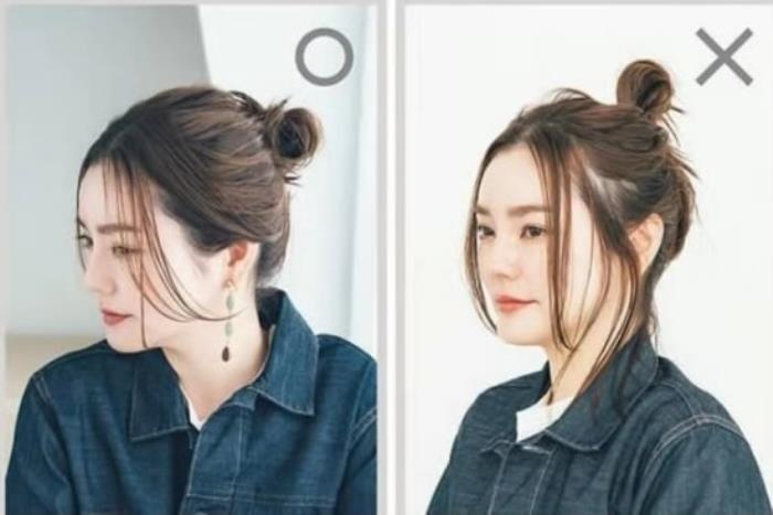 扎丸子头时,保持整体的自然和谐一体感。束起的丸子部分要与发顶、刘海连贯协调,不能突兀散乱。好看的发型,看着凌乱,实则讲究。