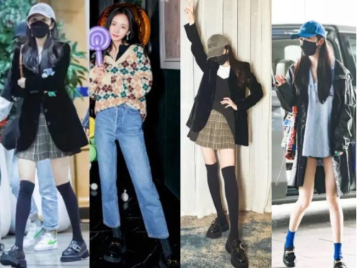 就比如杨幂,无论走在哪个场合都会穿着同一个单品乐福鞋,各式各样的款都有。
