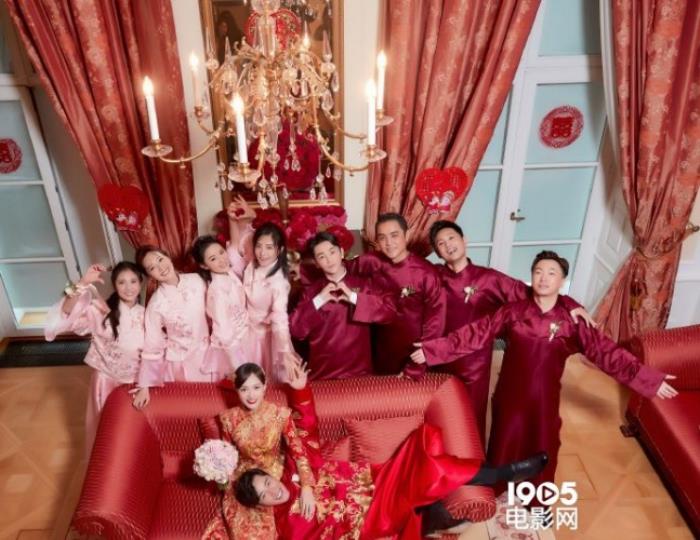 唐嫣的纯白婚纱采用了背部镂空的设计,尽显窈窕身材。据悉,罗晋西装外套的链子是特别定制的,上写有“L”和“Y”的字样,在细节上处处体现爱意。同时,这组图片还包括了两张伴郎伴娘团的集体照,孙坚、明道、边江领衔伴郎团和郭晓婷、陈钰琪等人组成的伴娘团表情可爱搞怪,“花式比心”更表达了对两位新人的祝福。