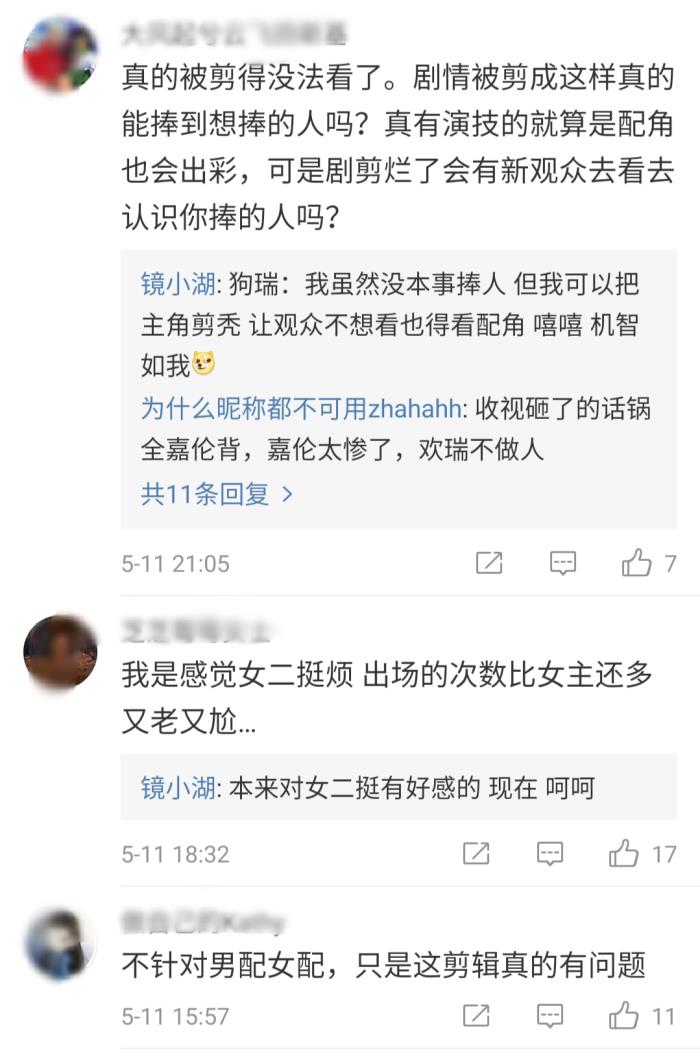 接着是被压了三年《秋蝉》喜提两大一线卫视播出。网上有传闻说是因为年初的《锦衣之下》爆红,《秋蝉》才有资格上星播出。欢瑞的剧现在品质基本都是参差不齐的,《秋蝉》在开播的时候就有人质疑它注水了,结果它的的确确是给配角加了太多戏,粉丝质疑配角池城(刘欢饰演)加戏太多,叶冲高光精彩戏份全被剪得支离破碎,大规模注水。