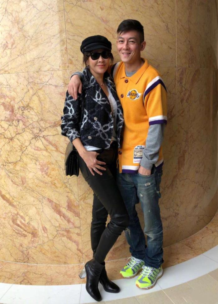 可以看到刘嘉玲身穿黑色波点上衣,一头短发,粉色口红显得她气色很好,一旁的陈冠希身穿蓝色上衣,皮肤黝黑,笑得很阳光。刘嘉玲把头靠在陈冠希的身上一脸笑意,可以看出两人的友谊像哥们一样。