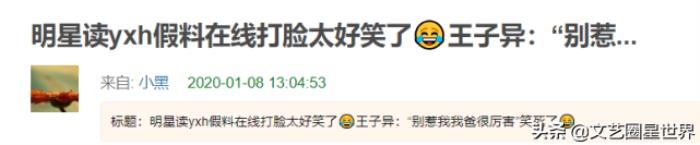 耿直boy王子异丝毫不惧,直接就拿起稿子玩起了“打假游戏”。顺嘴开始读起了自己的假料,假料一:“王子异家境很好,但是这位少爷在娱乐圈的发展不容乐观,现在家里已经想让他退圈了,他爸爸私下没少和人抱怨这件事。”然后王子异就把自己给读笑了,还调侃道:“这我得问问我爸爸。”看来王子异本人都不知道自己的这些料,也不知爆料者是不是长了千里眼顺风耳,能夜观天象洞知一切。