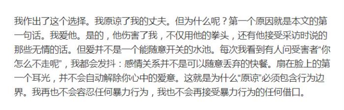 只不过我想说,如果我们对于家暴总是如此轻轻揭过,那么未来我们或者身边人遇到这种情况时,又要如何为自己维权?世界上没有无缘无故的恨,也不应该有轻而易举的原谅。
