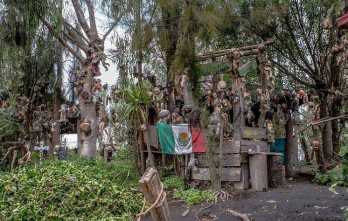 据悉,这个位于墨西哥南部的湖心岛,其实面积并不大,只是布满1000多个破旧不堪的布娃娃,慢慢成为一个十分诡异的景点。当地人则认为这些娃娃可以辟邪,爱猎奇的游客也因此慕名而来。