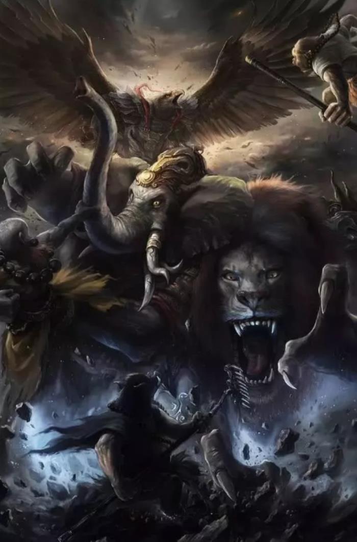 大鹏精下界到狮驼国一个一个的把所有的几万狮驼国的国民全部吞进肚子,吃干喝净,建立了万妖的狮驼国,看一下原著的恐怖画面: