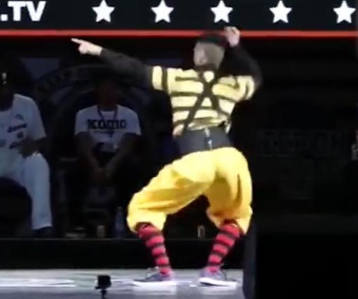 街舞文化包括服饰,内行才能看出门道。2019年KOD比赛中,肖杰穿了一身oldschool黄色条纹衣服,致敬上世纪七八十年代最古老的original街舞文化。