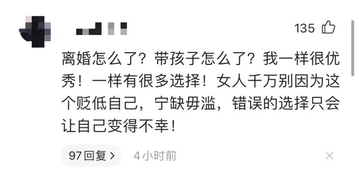 也有网友表示,都已经是什么社会了,婚史不能用来衡量一个人的好坏,只是一段过往罢了,感情破裂后离婚很正常。况且每个人都可以追求幸福,难道有了孩子,就不能为自己而活了吗?