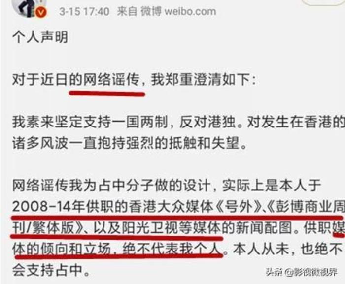 言外之意,大概这些都是吃瓜群众PS的。其中有一句话,承认自己于2008年至2014年供职香港的两个媒体。