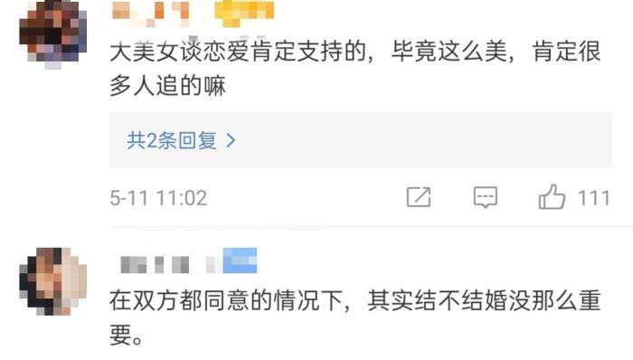 曾黎的言论也受到了不少网友们的支持,称“在双方都同意的情况下,其实结不结婚没那么重要”,还有网友表示“大美女谈恋爱肯定支持的,毕竟这么美,肯定很多人追的嘛”。