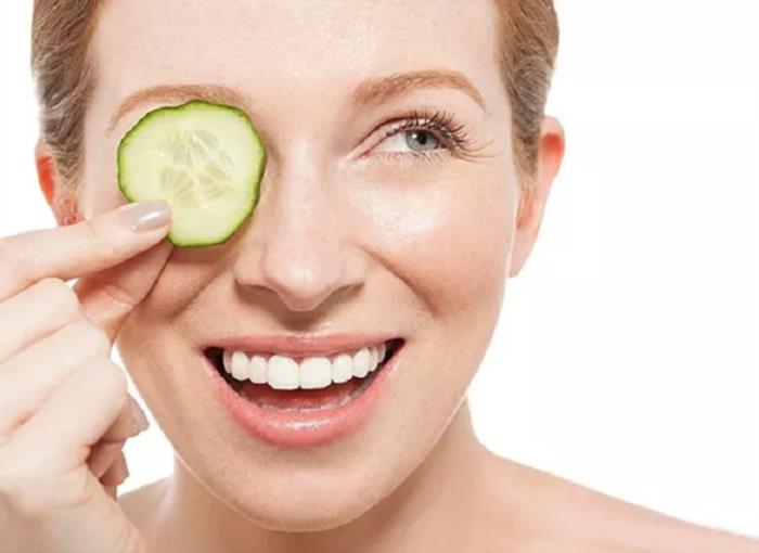 将黄瓜切片,然后敷在眼部周围的皮肤上,平卧15~20分钟后,用清水洗脸,能有效的缓解眼袋,并且还有保湿除皱的功效,即使没有眼袋也可以用其敷眼睛,好处非常多。