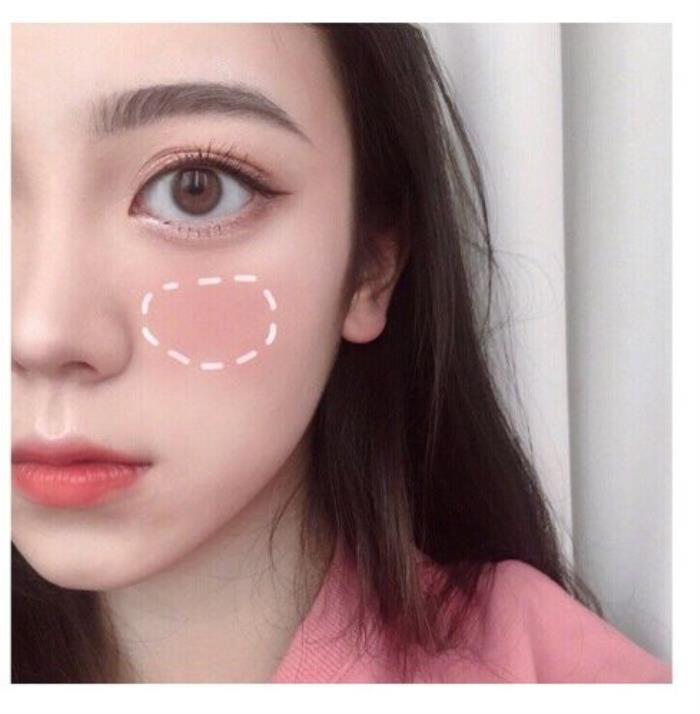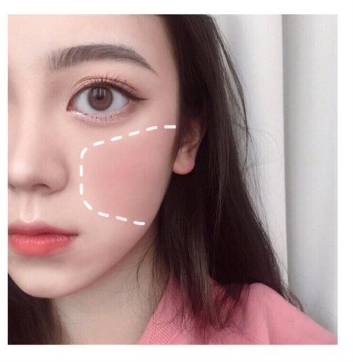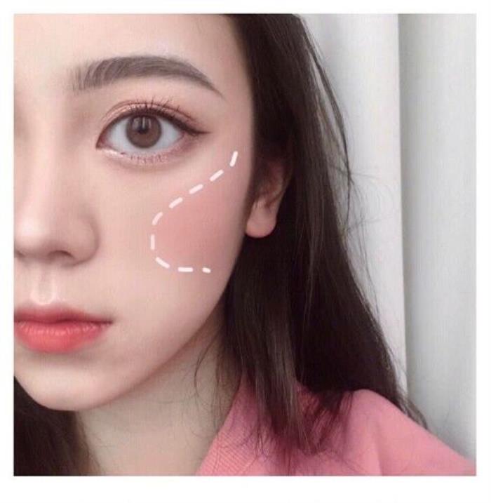 这是一款最常见的腮红画法,基本上不挑脸型,用来提升气色最好不过了。这款腮红的画法就是将腮红打在苹果肌偏上一点的地方,可以显得苹果肌更加饱满,显得更加元气少女,减龄效果一百分,无论是上班还是上学,都是必备的腮红画法,适用范围广,是一款不可或缺的腮红画法。