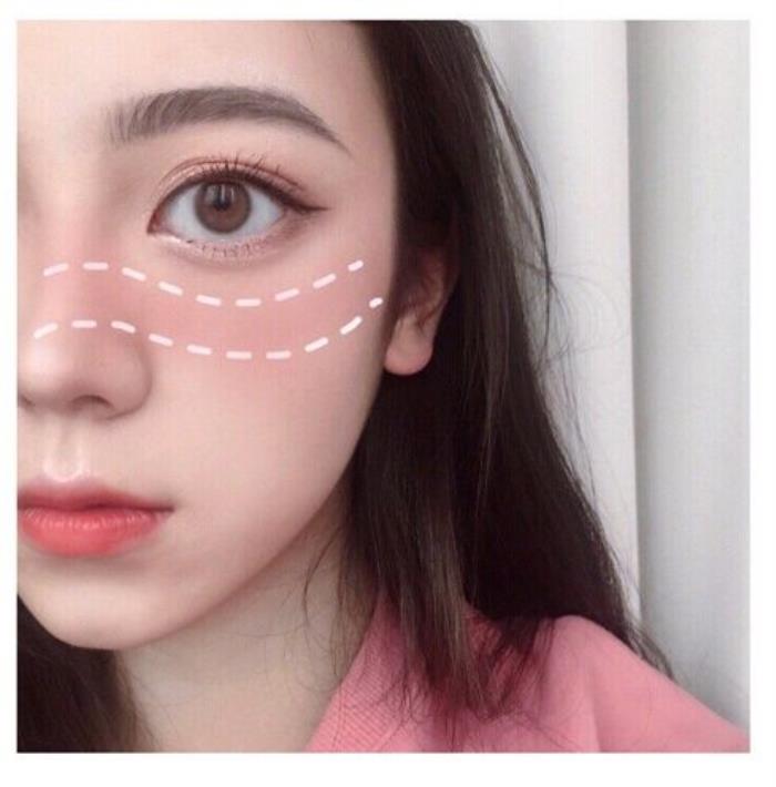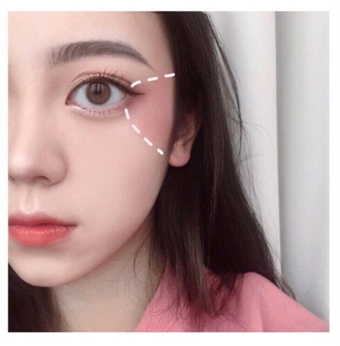 这种腮红画法非常可爱,很有少女感,十分减龄。腮红的画法也十分简单,用腮红刷将腮红轻轻扫在太阳穴和颧骨的交界处,画起来非常的日常,超级可爱的一种画法。比较适合学生的可爱小仙女哦。