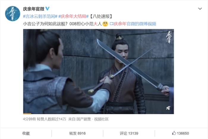 这部剧自播出到结束都备受关注,开播20天,豆瓣评分高至8.0,腾讯视频播放量超过22.5亿次,QQ阅读平台上原著同名小说打赏超过10万次,起点读书平台上原著也获得了340万张推荐票。毫无疑问,《庆余年》是当下全网最火的热播剧。